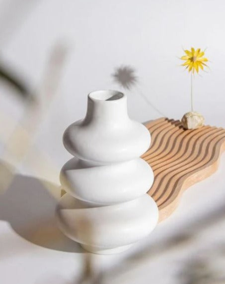 Jarrón tipo florero con suaves curvas que evocan movimiento y naturalidad. Su silueta estilizada lo hace perfecto para flores de tallo medio o como acento decorativo por sí solo.