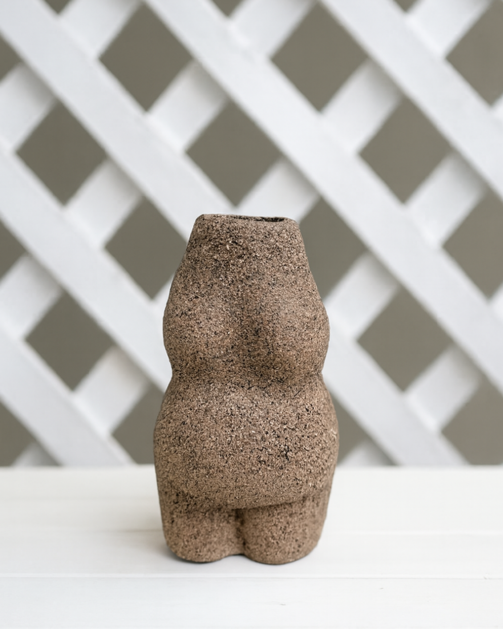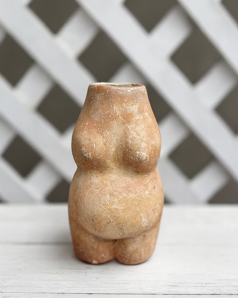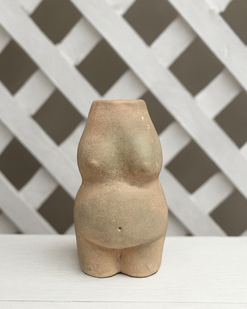 Jarrón de silueta completa inspirado en la figura femenina, que celebra la forma y fuerza del cuerpo de la mujer. Una pieza con carácter y suavidad que aporta calidez a cualquier espacio.