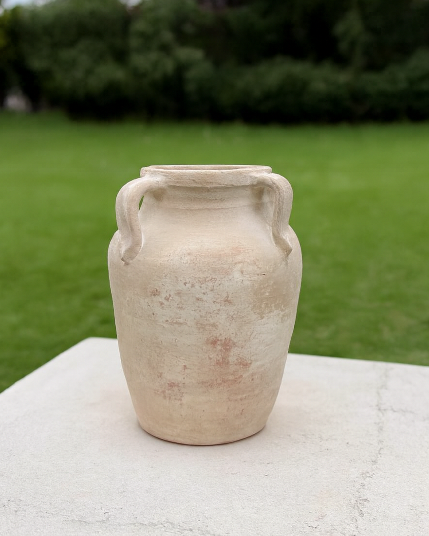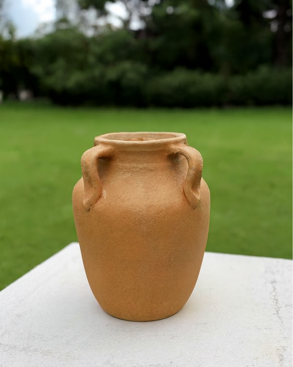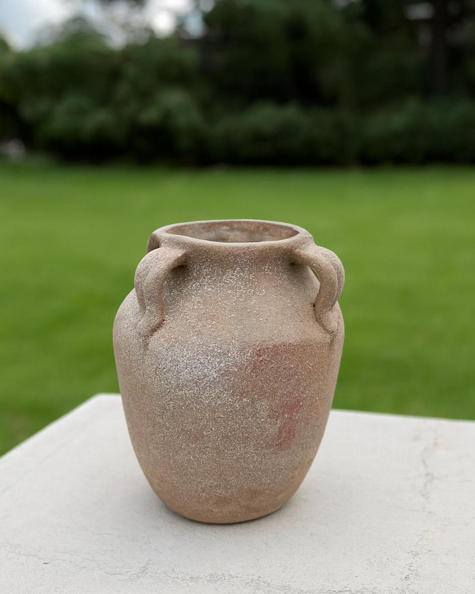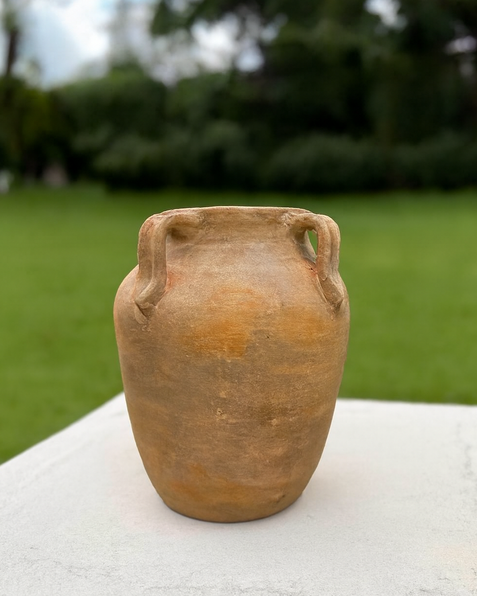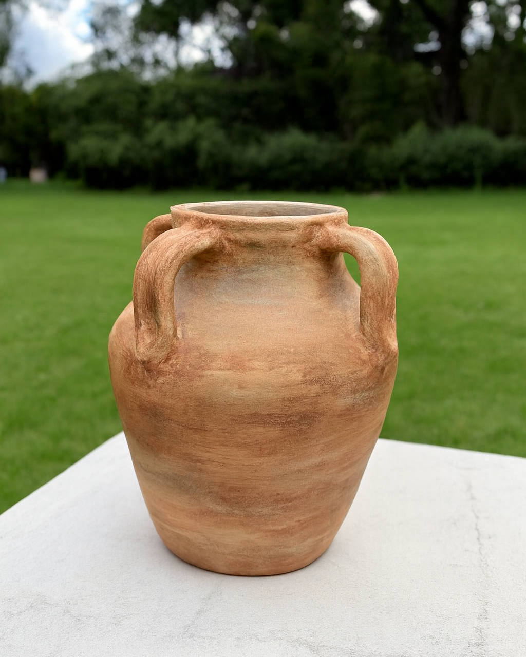 Pieza artesanal que combina historia, arte y modernidad. Su diseño robusto con curvas y textura natural la convierte en un acento perfecto para interiores rústicos, bohemios o contemporáneos. Ideal para usar como jarrón decorativo o pieza central en mesas y estanterías.