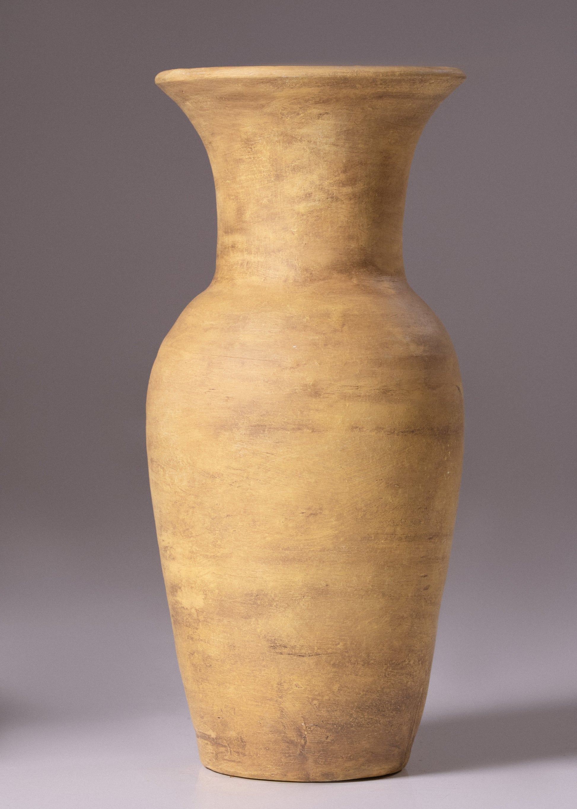 Pieza alta de barro con diseño tradicional, ideal para aportar un toque rústico y elegante a cualquier ambiente. Este jarrón artesanal combina la belleza de los colores beiges con un estilo atemporal, convirtiéndose en el complemento perfecto para realzar tus espacios con calidez y personalidad.