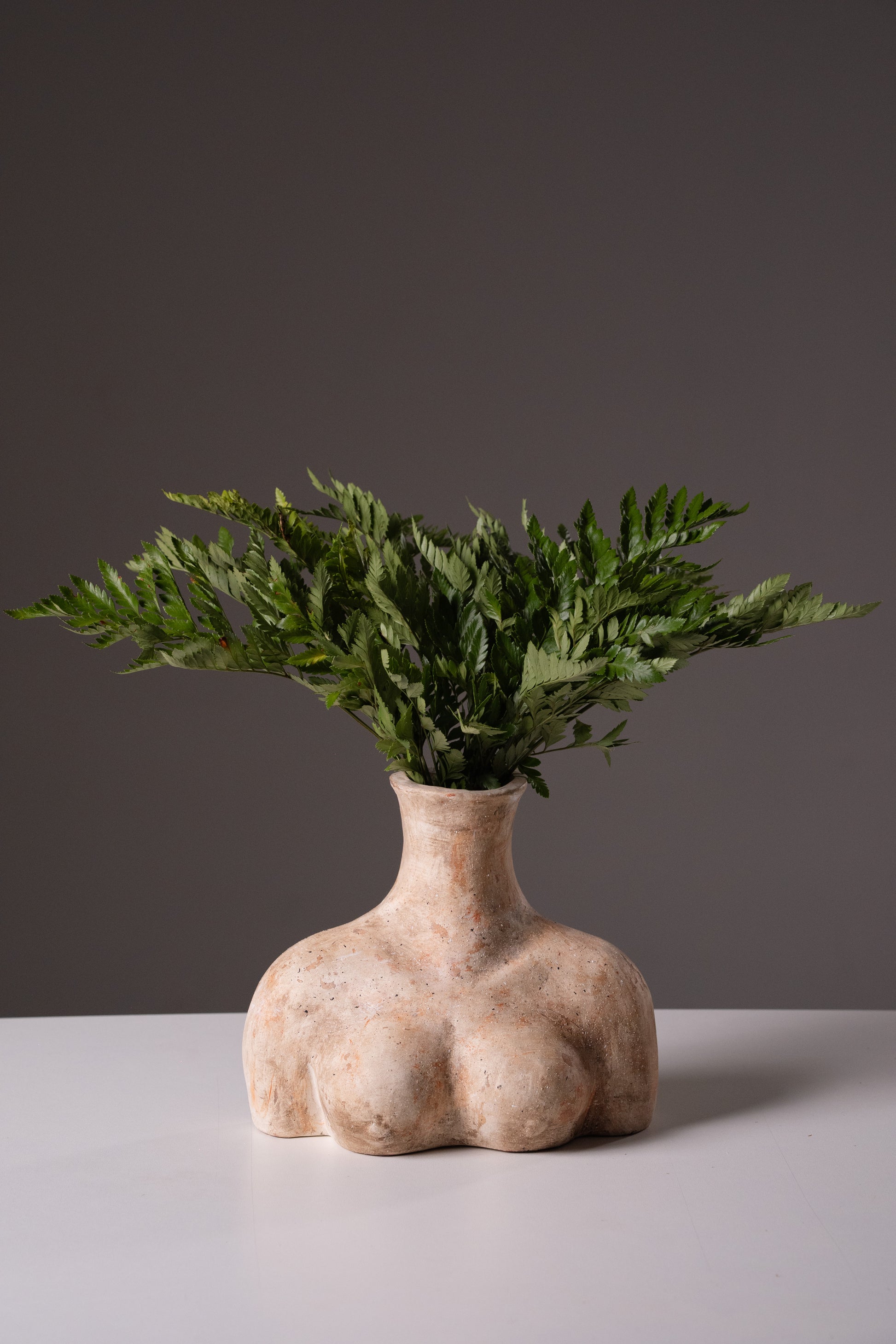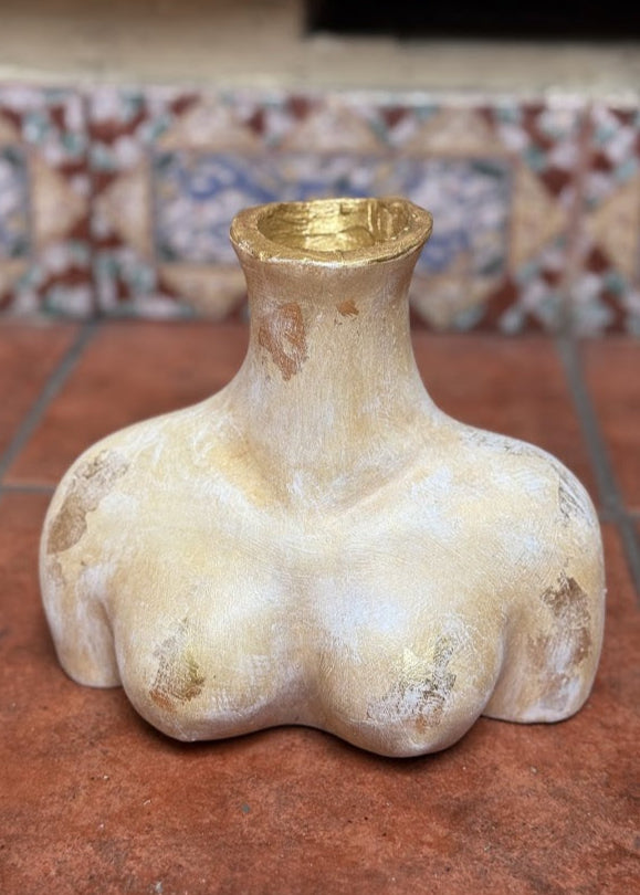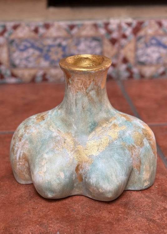 Jarrón tipo busto de mujer en tamaño mediano que celebra la figura femenina desde una perspectiva escultórica. Una pieza con presencia que aporta fuerza, elegancia y un enfoque artístico a cualquier espacio.