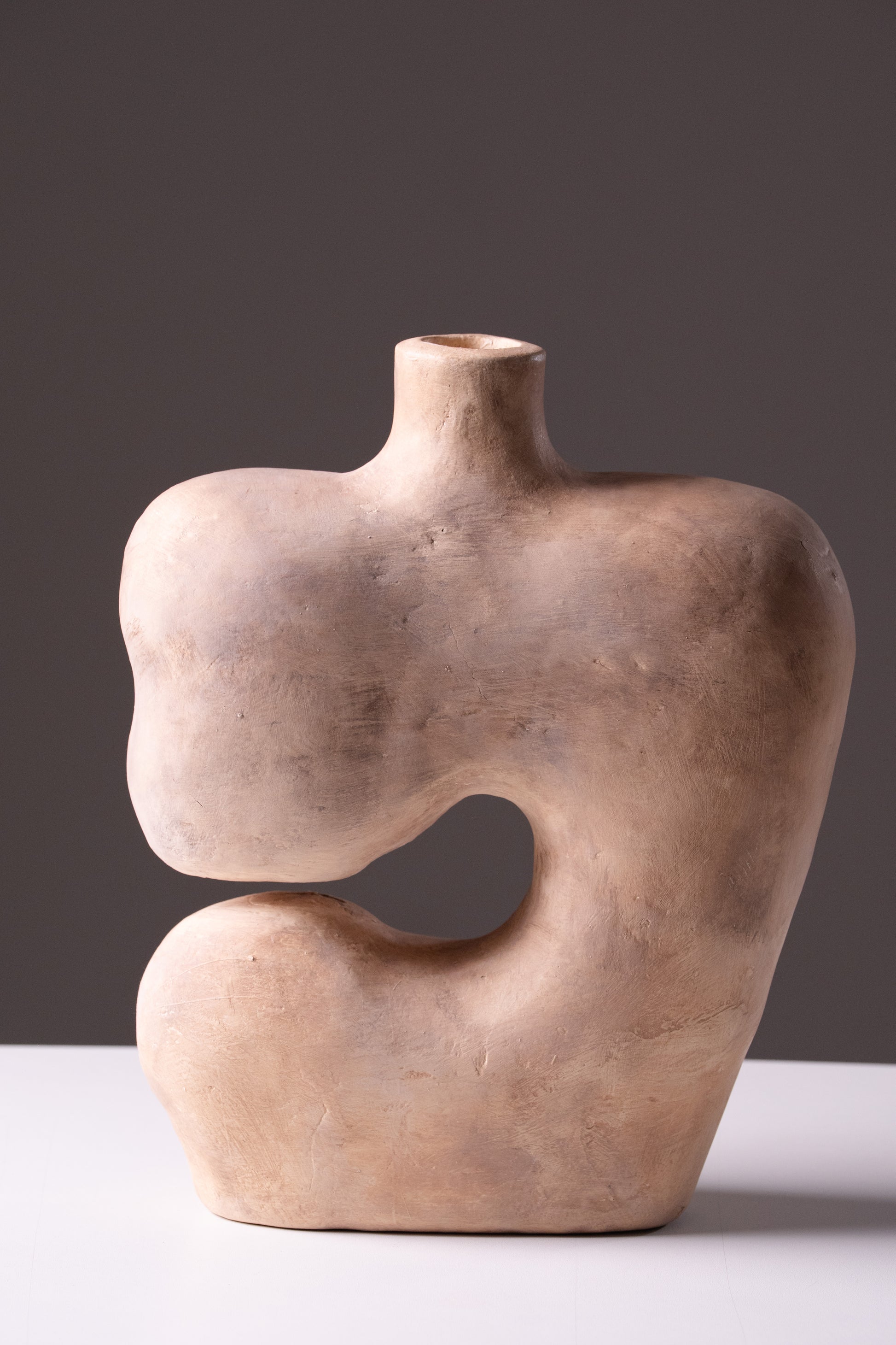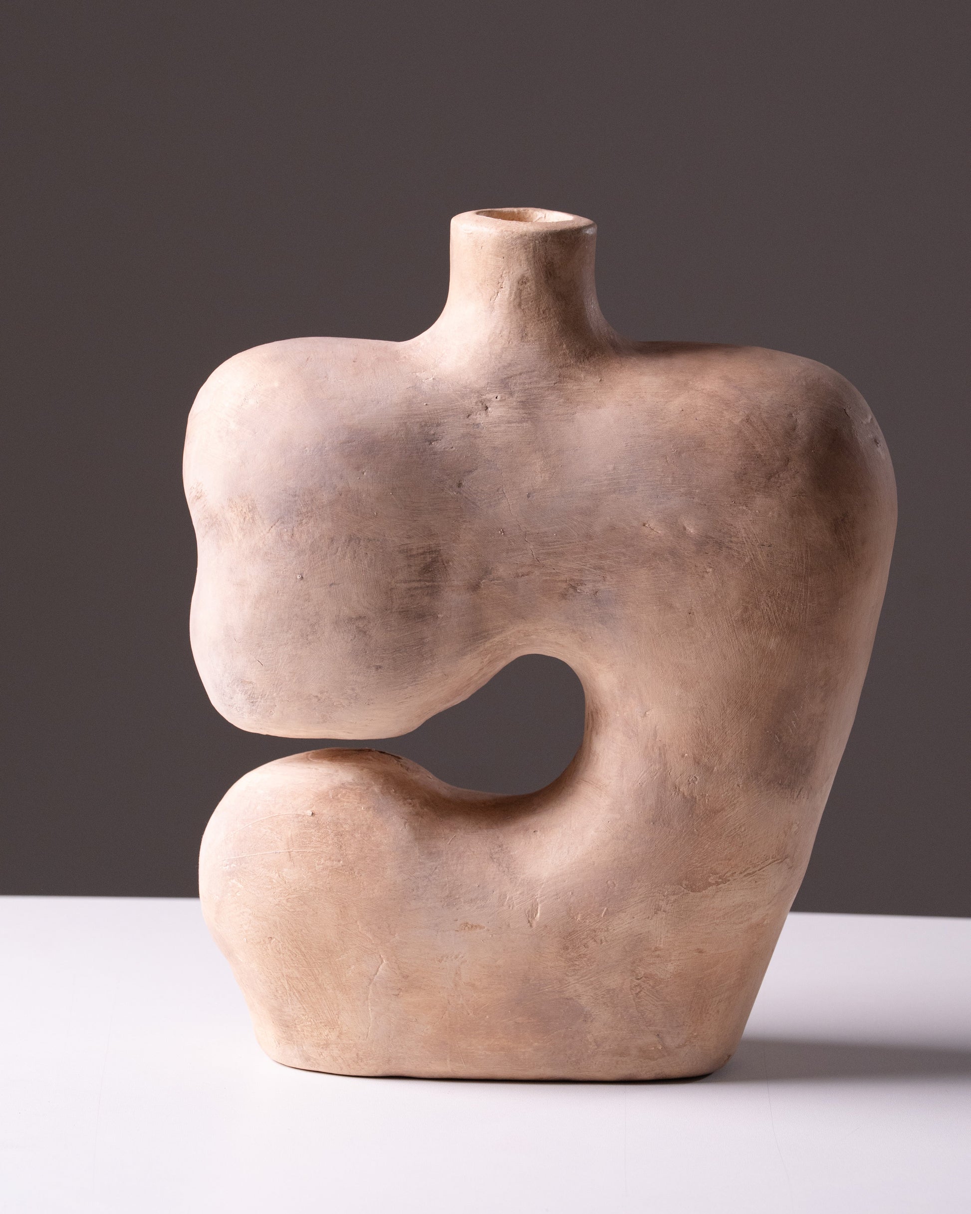 Pieza con un diseño orgánico y abstracto, con formas curvas y una abertura central que le da un aspecto escultórico y moderno.