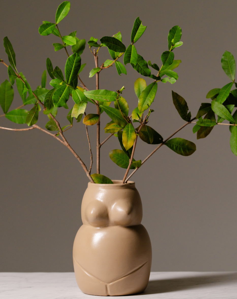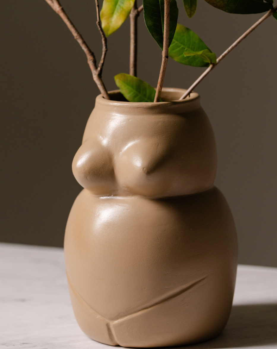 Jarrón de silueta completa inspirado en la figura femenina, que celebra la forma y fuerza del cuerpo de la mujer. Una pieza con carácter y suavidad que aporta calidez a cualquier espacio.