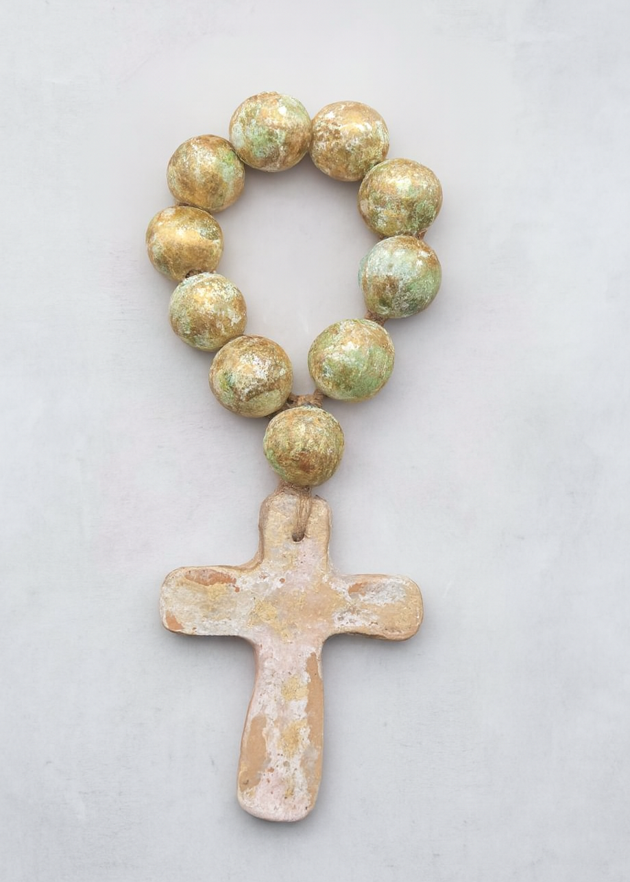 Nuestros rosarios están hechos a mano en barro, usando técnicas tradicionales que conectan con lo ancestral y lo sagrado. Cada cuenta es única, con la textura y calidez de la tierra. Más que un objeto devocional, es un símbolo de fe, reflexión y arte. Perfecto para quienes valoran lo auténtico y hecho con el corazón.